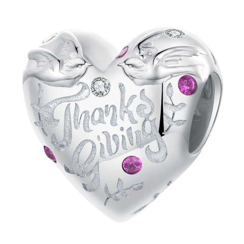 925 Sterling Silver Zircon Rhodium Plated Thanksgiving Pendant Red Heart Love Beads Women's Bracelet Accessories DIY Holiday