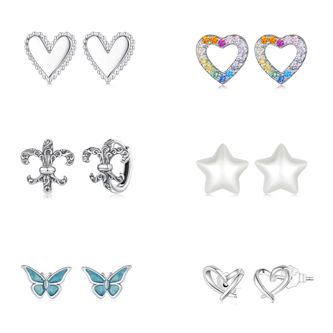 New Trendy Fine Silver Jewelry Heart Earrings Sterling Silver, Stamped Cz Pearl 925 Sterling Silver Zircon Stud Earrings Women