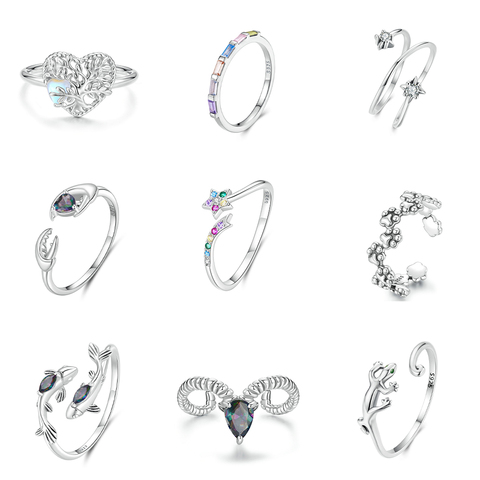 Anéis de prata 925 para meninas, venda por atacado, anéis de baleias torcidas, coroa, oceano azul, sol, zircônia, safira, anel 18 yuan