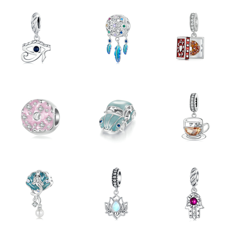 Direto da fábrica OEM 925 Prata Dreamcatcher Encantos Rainbow Coffee Car Angel Eye Beads Moda Pingente para Pulseira Ajustável