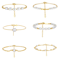Mới đến xinh xắn cổ điển có thể điều chỉnh 14K mạ vàng 925 Sterling Silver bạc nuôi cấy ngọc trai nước ngọt Vòng đeo tay cho phụ nữ cô gái